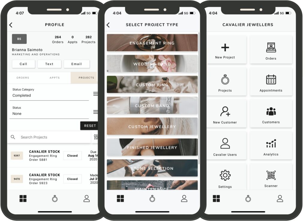 ​We began by focusing on the most critical components of the app; project management (ring designs & creation) along with customer relationship management.