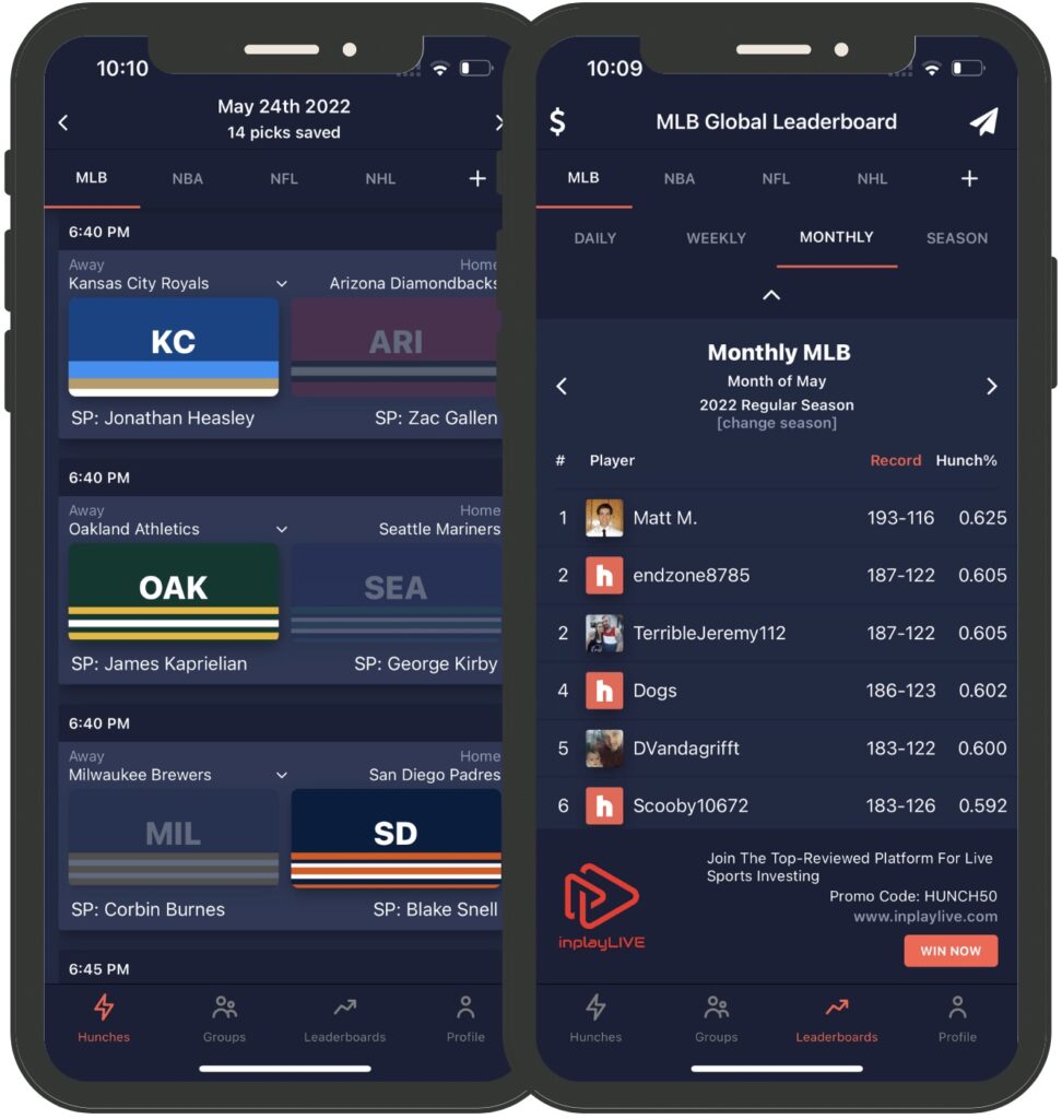 We created a simple to learn and highly engaging game that  is available on all platforms. Hunch is now used daily by 1000’s of players around the world, playing NHL, NBA, NFL, MLB & NCAA games with their friends.